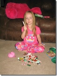 The next morning all the girls were up bright and early.  They were excited to see what they got.  To their delight they got some comfy reading pillows, some books, games, movies, a few other miscellaneous toys and items and of coarse candy.  Courtney wouldn’t quite believe it was Christmas if she didn’t get candy in her stocking.